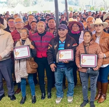 * • La diputada Martha Camacho, presidenta de la Directiva de la LXII Legislatura mexiquense, acompañó a María Eugenia Rojano, secretaria del Campo, a la entrega de reconocimientos y premios a las personas ganadoras del Segundo Concurso de Personas Productoras de Maíz Nativo y Amaranto del Estado de México bajo Producción Agroecológica. La diputada Martha Azucena Camacho Reynoso (morena), presidenta de la Directiva de la LXII Legislatura mexiquense, acompañó a María Eugenia Rojano Valdés, secretaria del Campo del gobierno estatal, a la entrega de reconocimientos y premios a las personas ganadoras del Segundo Concurso de Personas Productoras de Maíz Nativo y Amaranto del Estado de México bajo Producción Agroecológica. El evento se realizó en la cancha de futbol del Conjunto de la Secretaría de Desarrollo Agropecuario, en San Lorenzo Coacalco, en Metepec, al cual también acudieron las legisladoras Gloria Vanessa Linares Zetina (PVEM) y María del Consuelo Estrada Plata (PT).