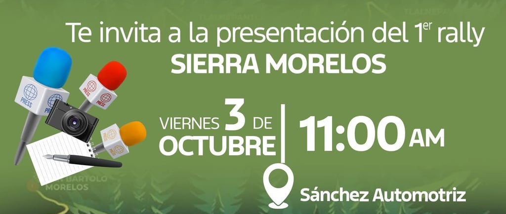 BOLETÍN DE PRENSA El próximo 4 de octubre de 2025, los caminos del Estado de México se vestirán de gala para dar la bienvenida a la primera edición del Rally Sierra Morelos, un evento que busca consolidarse como una tradición deportiva en la región. La competencia recorrerá los espectaculares parajes de Jilotzingo, Jiquipilco, Temoaya y San Bartolo Morelos, mostrando la riqueza natural y cultural de estos municipios. La arrancada oficial tendrá lugar a las 11:10 horas en el restaurante JIP, ubicado en Jilotzingo. Tras recorrer 202.58 kilómetros de rutas cuidadosamente diseñadas para poner a prueba la precisión y el trabajo en equipo de las tripulaciones, la caravana llegará a San Bartolo Morelos alrededor de las 16:00 horas, donde se celebrará la meta final y la ceremonia de premiación. En esta primera edición se darán cita 18 tripulaciones provenientes de la Ciudad de México, Toluca, Querétaro y otras regiones del país. Los competidores participarán en distintas categorías en un rally de regularidad, en el que lo más importante no es la velocidad máxima, sino la capacidad de los pilotos y copilotos para mantener promedios de entre 40 y 80 km/h con la mayor exactitud posible. El Rally Sierra Morelos no solo representa una prueba deportiva de alto nivel, sino también una oportunidad para impulsar el turismo local, generar derrama económica en los municipios sede y fomentar la cultura del automovilismo deportivo en el país. “Queremos que este rally se convierta en un referente dentro del calendario deportivo del Estado de México y que, al mismo tiempo, sea una ventana para mostrar la belleza de nuestra región. Agradecemos profundamente a las autoridades estatales, municipales y a nuestros patrocinadores por confiar en este proyecto y hacerlo posible”, señaló el comité organizador. El evento contará con el respaldo y la coordinación de las autoridades del Gobierno del Estado de México, así como de los ayuntamientos involucrados, quienes han brindado todas las facilidades para garantizar un rally seguro, bien organizado y abierto al disfrute de los habitantes y visitantes. La invitación está abierta para que los aficionados al automovilismo, familias y turistas asistan a lo largo del recorrido y disfruten de un día lleno de emoción, cultura y deporte en la primera edición del Rally Sierra Morelos 2025